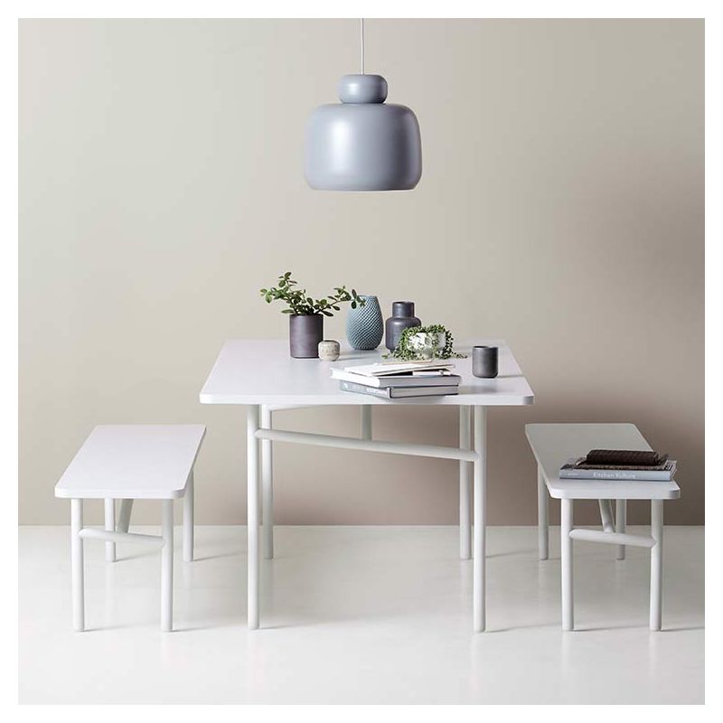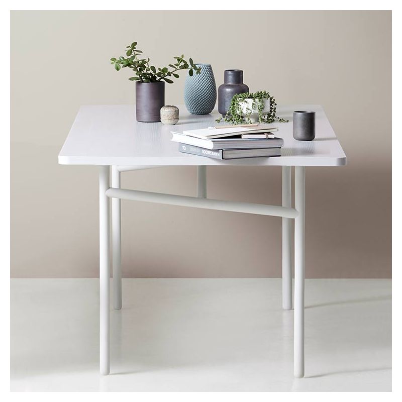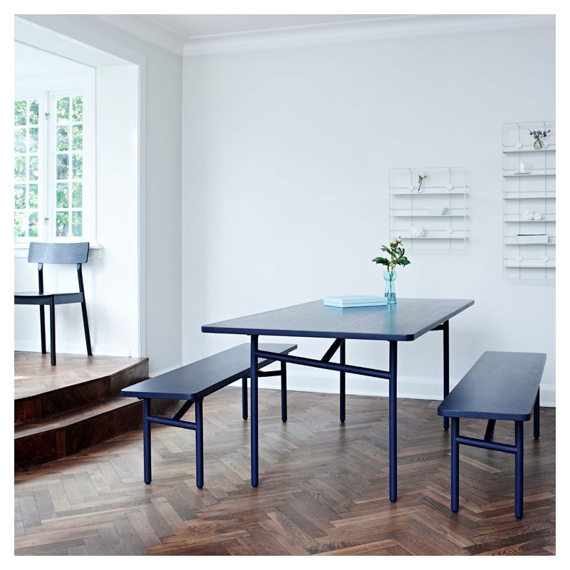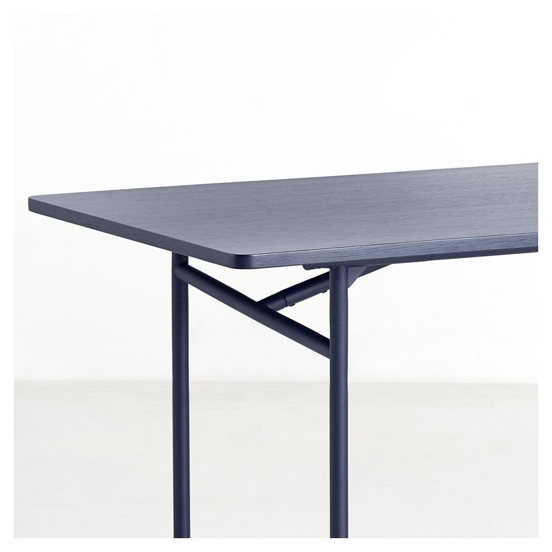 La table rectangulaire Diagonal allie bois et métal, en bleu, gris ou noir. Une table moderne pour le séjour ou le bureau, et l'empreinte du design nordique sans se ruiner...