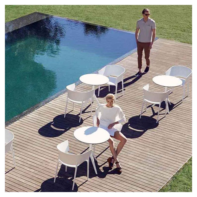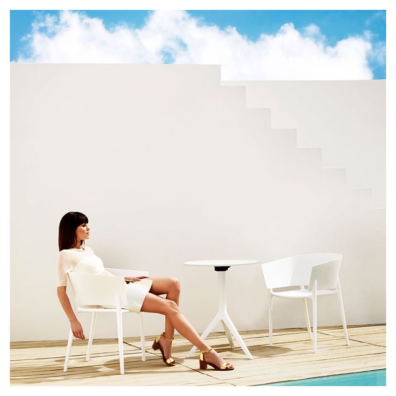 Spécialiste reconnue du mobilier outdoor design en polyéthylène rotomoulé, la marque espagnole exploite ici le procédé du polypropylène moulé par injection, renforcé de fibre de verre.