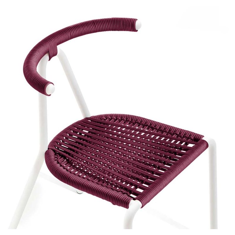 | Détails | Chassis en acier tubulaire galvanisé avec pieds droits, Finition peinture vernie coloris blanc ou noir, Assise tressée & dossier habillé de corde en fils de polyester teintés dans la masse, Empilable par 3 unités, Pieds équipés d'embouts en caoutchouc antidérapant et anti-rayure |