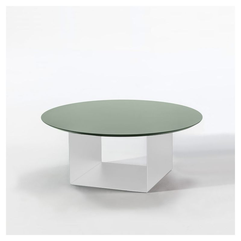 La table de salon contemporaine Reflex est fabriquée en deux dimensions, diamètre 70 cm et 100 cm.