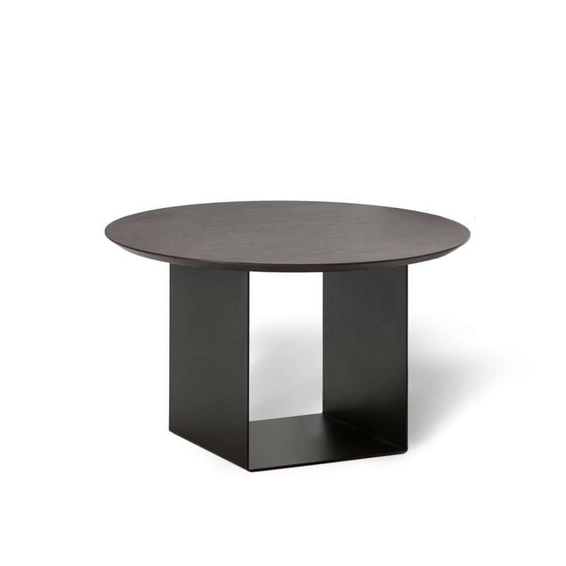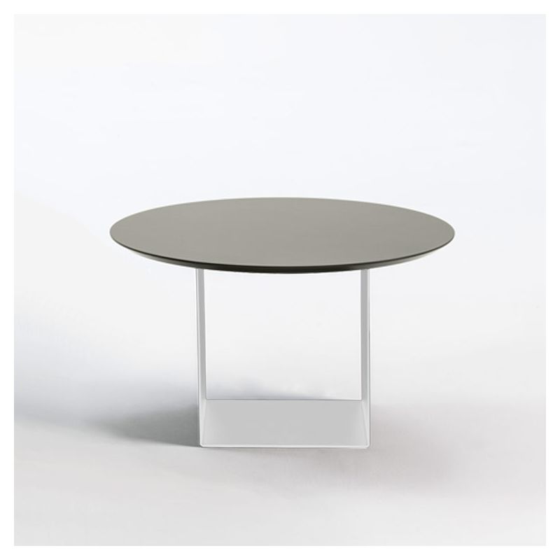| Détails | Base en métal plié formant pied central, Finition thermolaquée microtexturée, Plateau rond en MDF laqué ou plaqué bois avec chant biseauté |