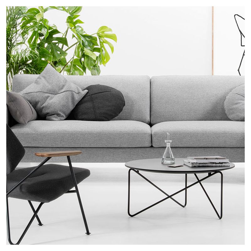 Table basse ronde Polygon avec pieds métal noir ou blanc et plateau bois massif. Un style chaleureux pour embellir le salon ou un espace professionnel...