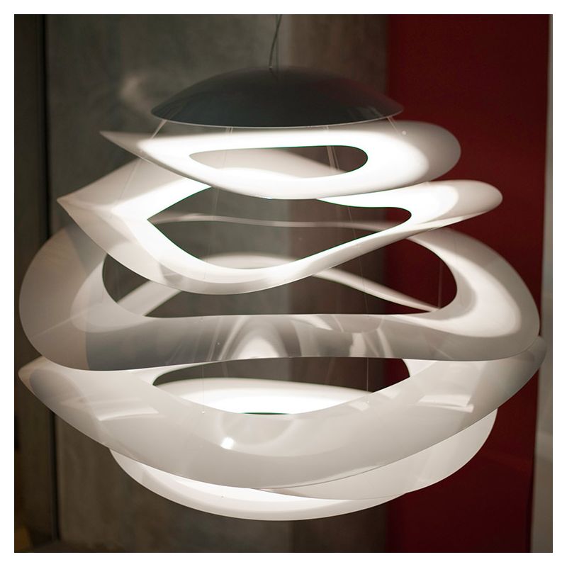 Entre sculpture et lumière d'ambiance, la suspension LED Buckle allie merveilleusement fonction d'éclairage, légèreté et magie lumineuse. Ø 120 et Ø 70 cm...