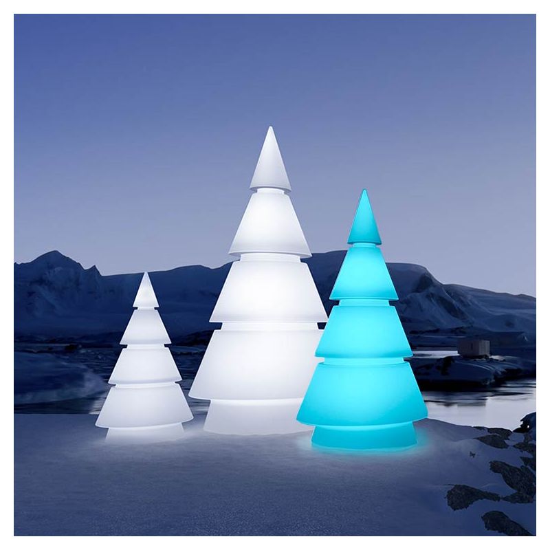 Avec le sapin lumineux Forest Vondom, la féerie de Noël investit le jardin dans un style sobre. Sapin LED 1,5 m, blanc ou multicolore. Design Ramon Esteve...