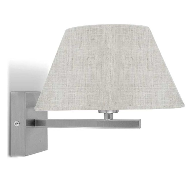 | Détails | Platine de fixation murale carrée 10 x 10 x 3 cm en métal finition nickel brossé permettant le raccordement direct à la source électrique, Bras horizontal fixe section carrée longueur 17 cm en métal finition nickel brossé, Abat-jour fait-main revêtu textile 100% coton ou 100% lin pour les coloris lin clair et lin foncé, Câble d'alimentation revêtu PVC transparent, longueur 150 cm, Interrupteur marche/arrêt sur le câble d'alimentation |