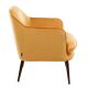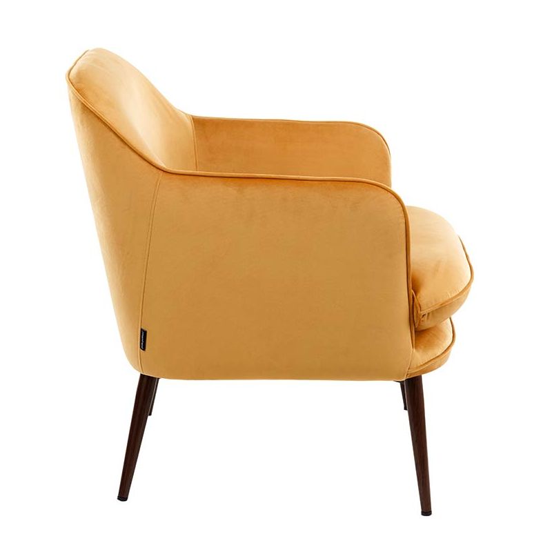 | Détails | Cadre en métal et pieds ronds effilés en métal, Finition laqué époxy poudre, Dossier assise et coussin rembourrés mousse, Entièrement revêtu (assise, accoudoirs, devant et dos) de tissu velours, Hauteur des accoudoirs : 60 cm |