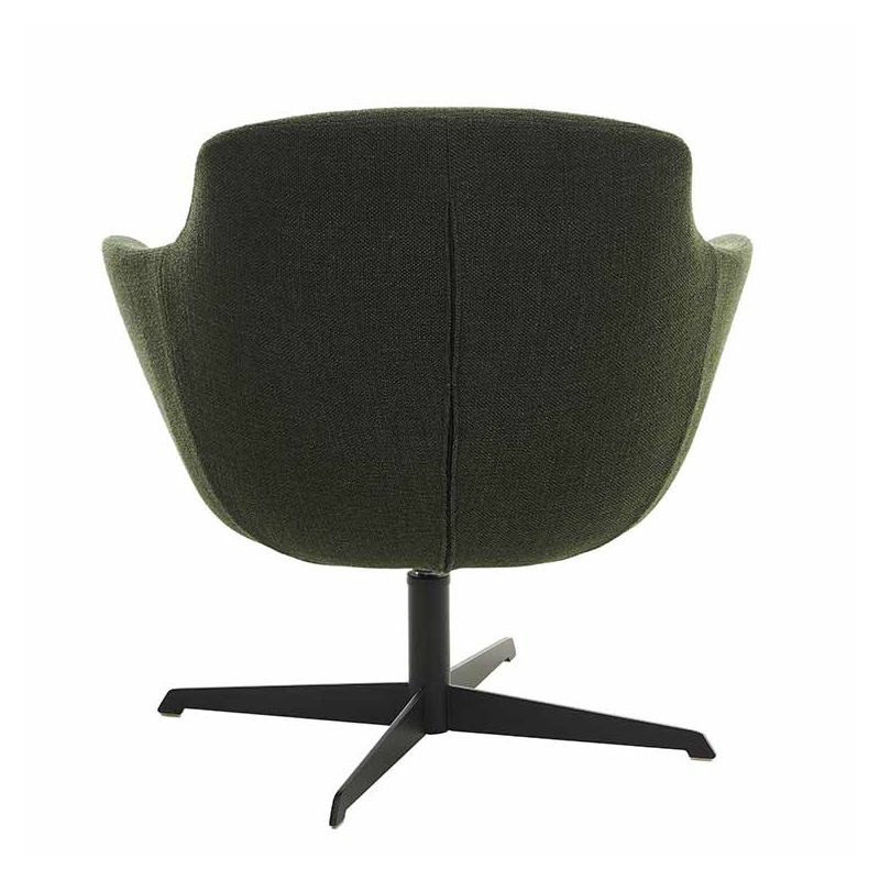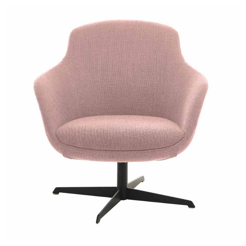 | Détails | Pied étoile pivotant à 4 branches en métal noir époxy, Assise pivotante, Hauteur des accoudoirs : 60 cm, Dossier et assise rembourrés mousse, Entièrement revêtu (assise, accoudoirs, devant et dos) de tissu |