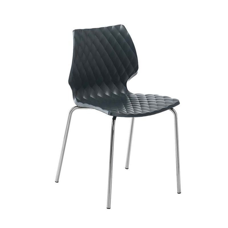 | Détails | Chassis en acier, Pieds chromés finition brillante ou satinée, Assise et dossier en polypropylène texturé avec effet matelassé, Pieds équipés de patins protecteurs anti-rayures, Empilable par 8 unités |