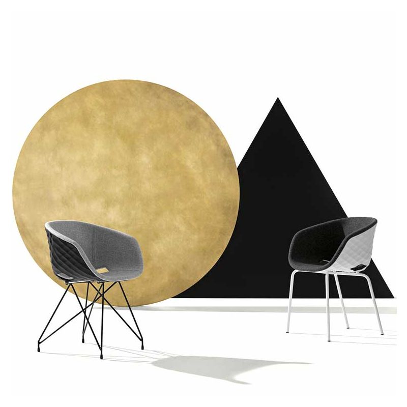 Assise enveloppante, habillage tissu, pieds treillis élégants : le design de la chaise personnalisable Uni-Ka 596 M est résolument pensé pour le bien-être...