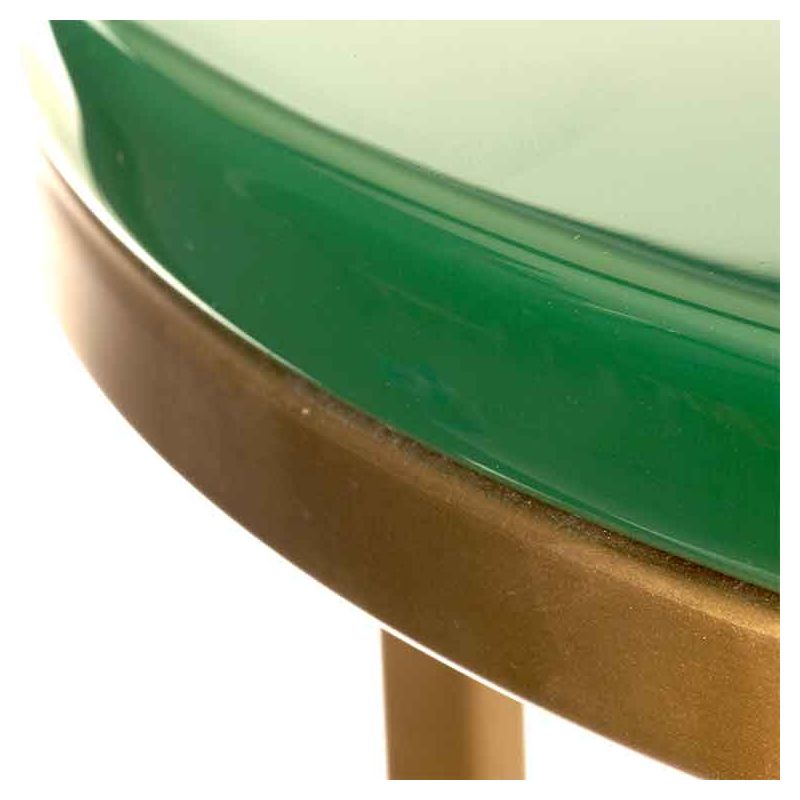 | Détails | Piètement à section carrée en acier inoxydable plaqué or, Plateau circulaire en MDF revêtu de laque ultra brillante, résistante à la chaleur, aux rayures et antibactérienne, La table la plus basse s'insère entièrement sous la plus haute pour un gain de place maximum, Plateau vert foncé pour le modèle haut, plateau gris pour le modèle bas |