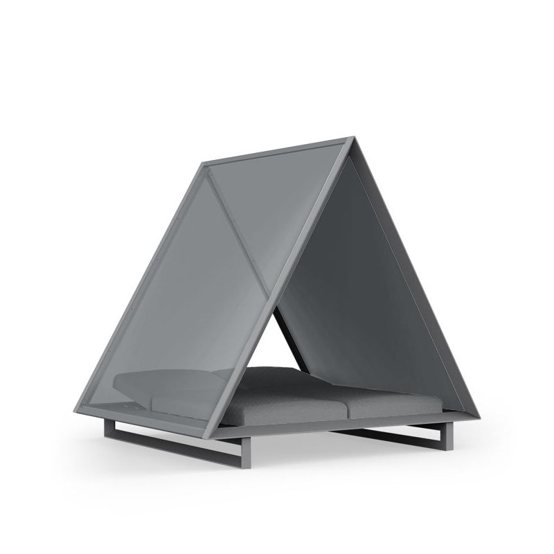 | Détails | Structure et montants du toit en aluminium thermolaqué, Base structure bains de soleil en polyéthylène rotomoulé, teinté dans la masse, finition mate, Toile de toit parasol textile haut de gamme Sunvision® éditée par la marque spécialisée Dickson, Intérieur équipé de deux bains de soleil inclinables, deux matelas garnis mousse densité 30 à 40 kg/m², épaisseur 15 cm, habillés de textile spécial outdoor Crevin |