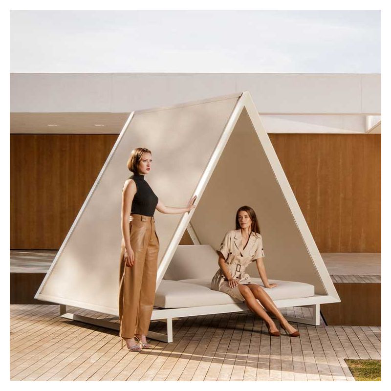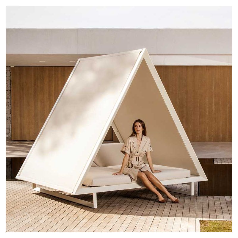 Avec ce luxueux daybed conçu par le designer Ramón Esteve pour Vondom, votre espace extérieur ne ressemble à aucun autre ! Comme un tipi personnalisable, pour s'isoler et se protéger du soleil...