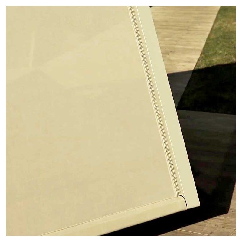 | Revêtement(s) | Tissu Crevin : textile spécial outdoor, aspect et toucher tissu, 57% polypropylène, 38% polyester, 5% polyuréthane, martindale > 60 000 cycles, traité anti-bactérien, résistant aux rayonnements solaires, lavable en machine, Textile Sunvision® : toile ajourée tissée 58% fil polyester enduit PVC, 42% fil acrylique, absorbe 83 % des UVs, écran solaire & thermique laissant passer la lumière, traité Cleangard anti-salissures & imperméabilisant, résiste au temps et aux intempéries |