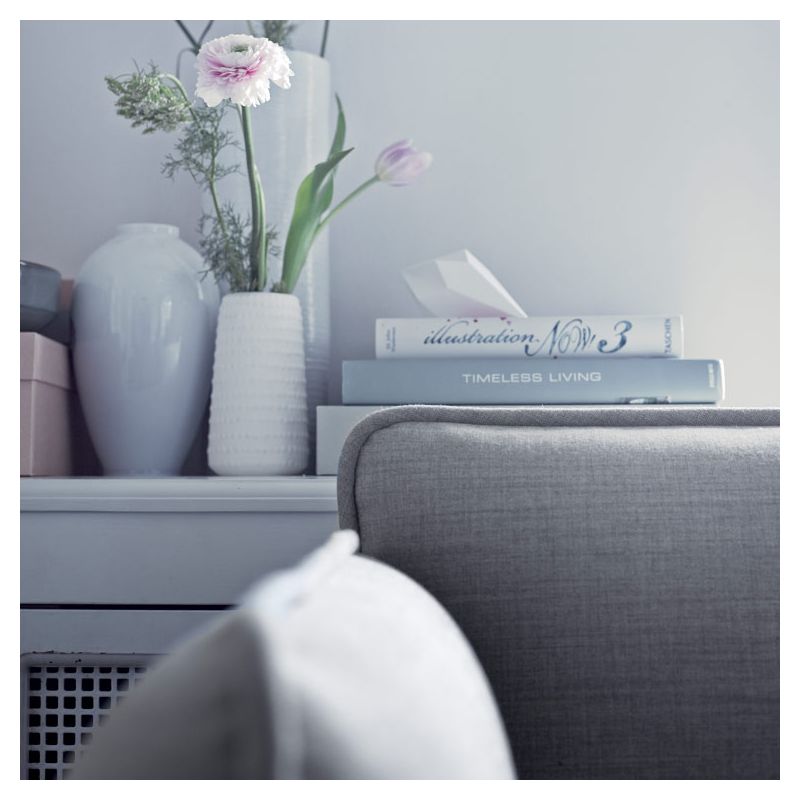 Toujours très en vogue cette année, le velours confère à Nakki beaucoup de douceur : on pourra opter pour le magnifique velours de coton bleu Harald de Kvadrat.