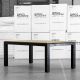 | Choix complémentaires sur demande | Existe en châssis laqué noir, blanc, champagne, bronze, gris perle, or, graphite laqué et plateau laqué brillant ou chêne, verre dépoli ou verre bronze sans suppléments, Existe en table ou bureau, format carré 120 x 120, 150 x 150 cm, table de réunion de 200 x 120 jusqu'à 600 x 120 cm - Nous consulter |