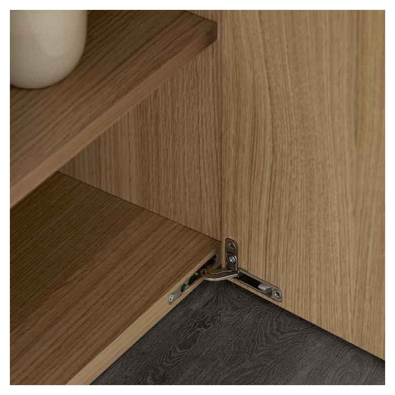 | Détails | Deux longueurs de plateau 200 ou 300 cm de la même essence que le corps, corps 3 portes 160 x 40 x 44 cm, Comprend une étagère intérieure à position fixe à mi-hauteur et pieds réglables., Structure et pieds en bois massif : chêne ou noyer selon finition choisie, Pieds équipés de patins protecteurs anti-rayures |