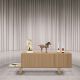Buffet bas trois portes Velasca de la marque Punt, avec dépose linéaire de 200 ou 300 cm, portes gravées d'un motif vertical. En noyer, chêne naturel ou teinté...