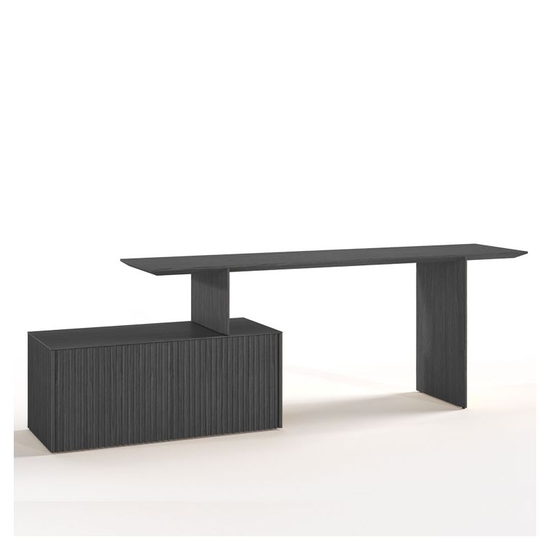 Bureau Velasca de la marque espagnole Punt, L 200 cm, deux caissons à portes à lattes verticales. En noyer, chêne naturel ou teinté...