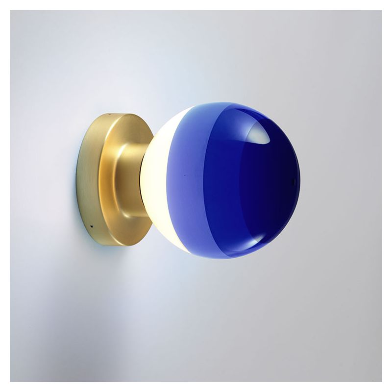 Applique Dipping light A2-13 lumière horizontale, corps en laiton brossé et diffuseur verre soufflé disponible en 5 coloris.