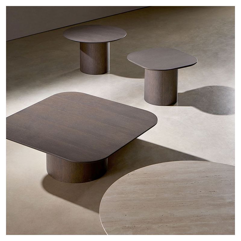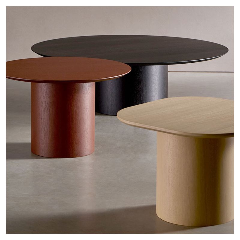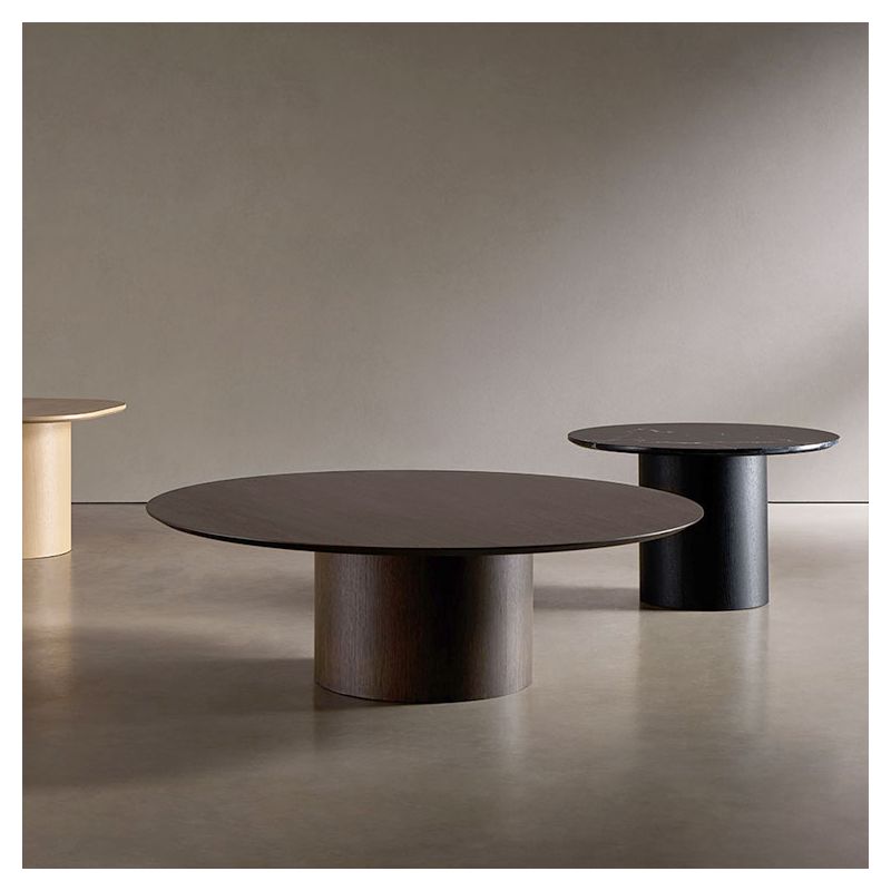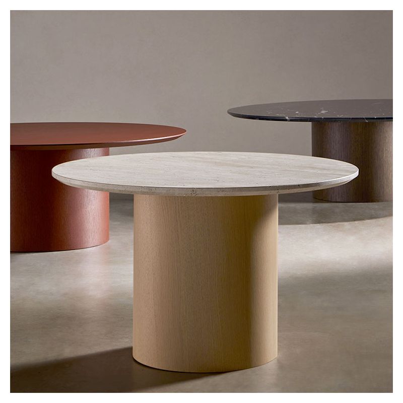La collection de tables basses FARO de la marque espagnole Kendo sont composées d'un plateau circulaire en marbre ou en MDF plaqué chêne et d'une structure cylindrique plaquée du même matériau. Grâce à leurs différentes hauteurs, ces tables se combinent parfaitement entre elles.