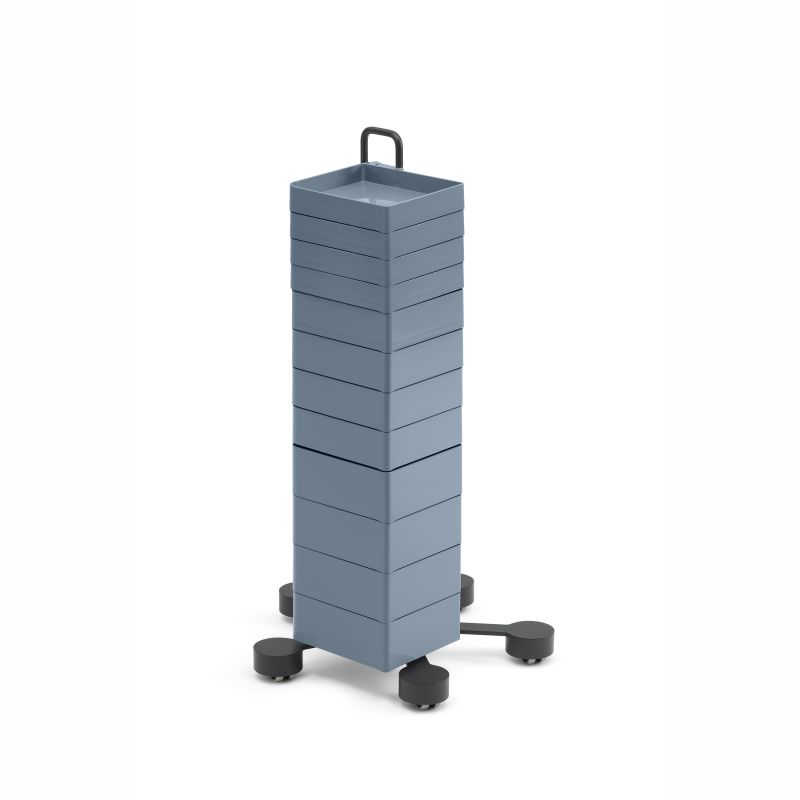 Composé d'une structure en acier peint et équipée d’une série de tiroirs en ABS de trois hauteurs différentes.
