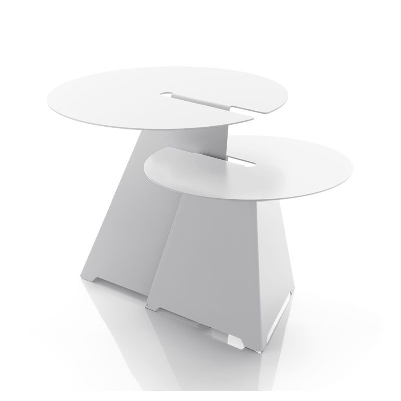| Détails | Piètement et plateau en tôle d'acier laqué, Plateau rond avec découpe, Deux tailles fonctionnant parfaitement ensemble, les modèles pouvant s'encastrer l'un dans l'autre, Acier vernis anti-rayures |