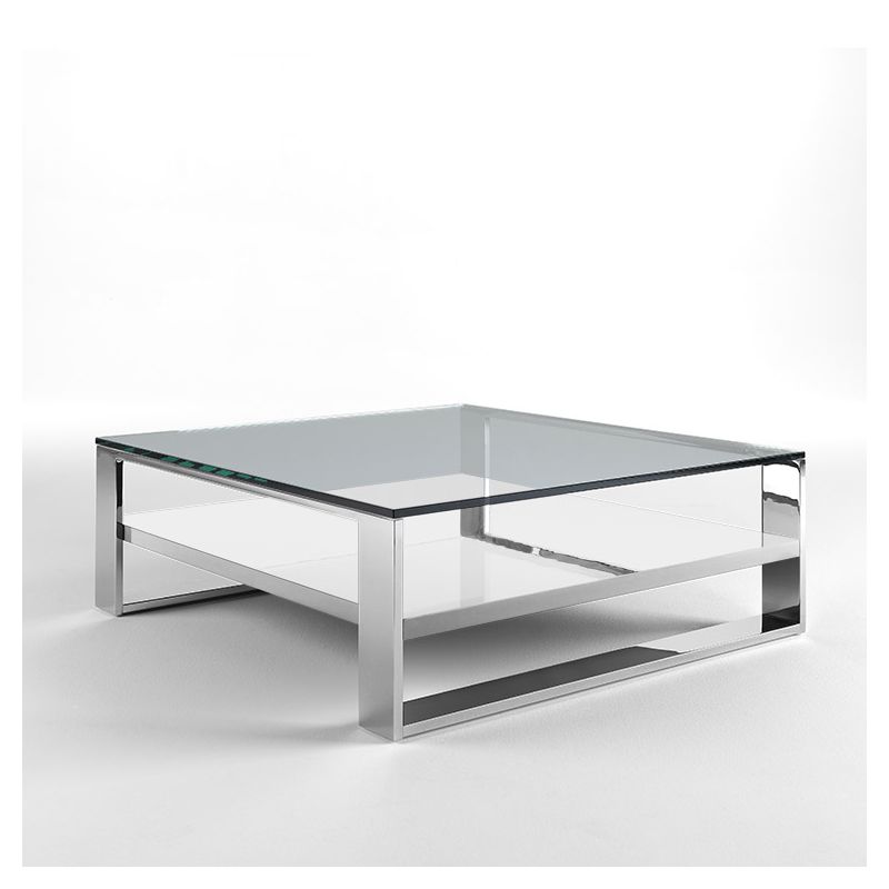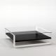 | Détails | Structure et piètement en métal finition chromée ou laquée, Plateau carré en verre trempé transparent épaisseur 1 cm, Tablette en MDF laqué ou plaqué bois |