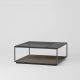 | Détails | Structure et pied socle en métal thermolaqué noir microtexturé, Plateau carré en verre fumé gris épaisseur 10 mm, Tablette inférieure en MDF, finition laqué ou plaqué bois |