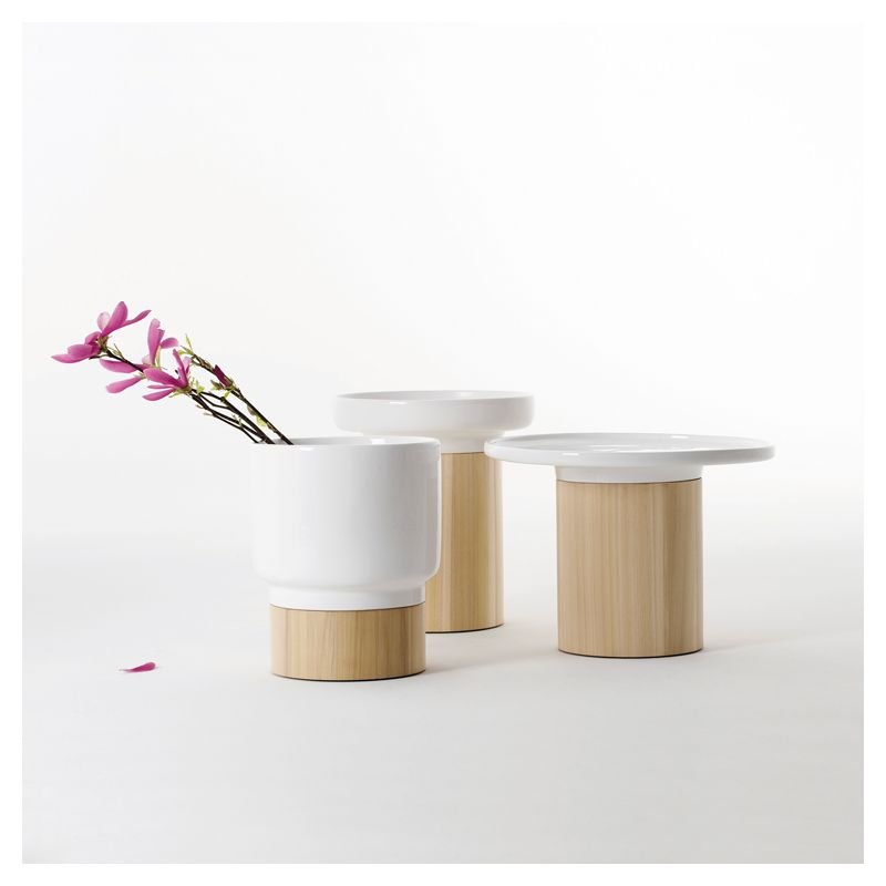 Mixant céramique et bois massif, la table d'appoint Apu Zeitraum ajoute aux décors contemporains une touche de confort en plus...
