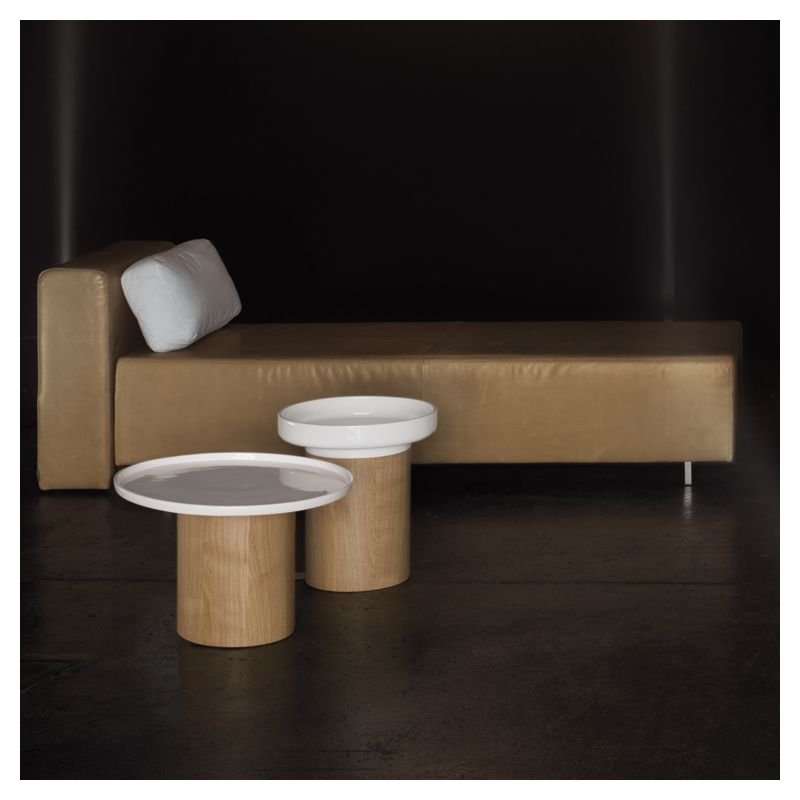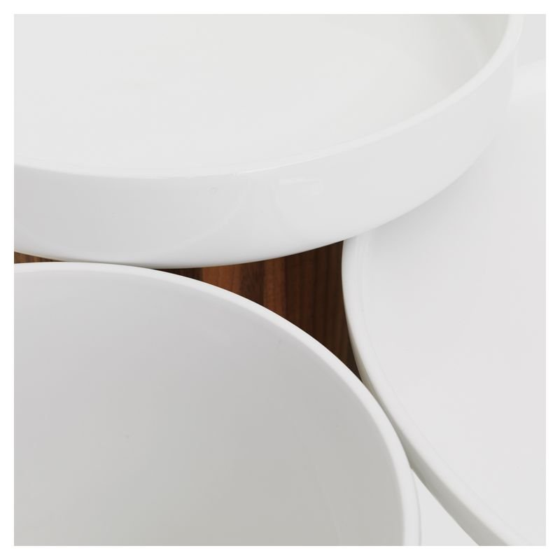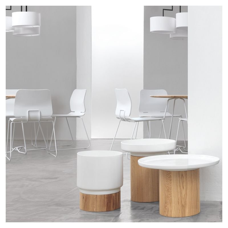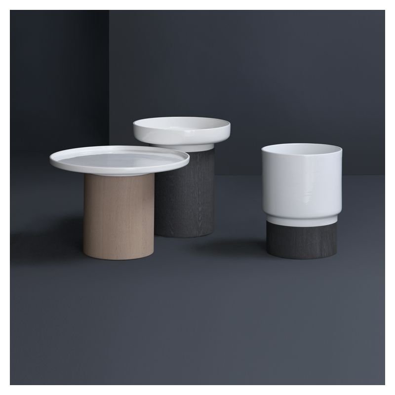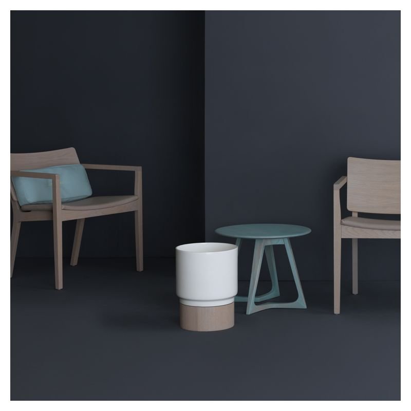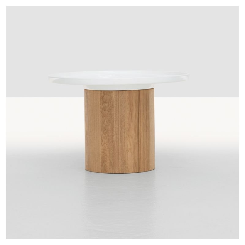 | Détails | Finition bois : huiles et cires naturelles imprégnées manuellement, Pied socle en bois massif Ø 24, Plateau céramique blanche à rebords |