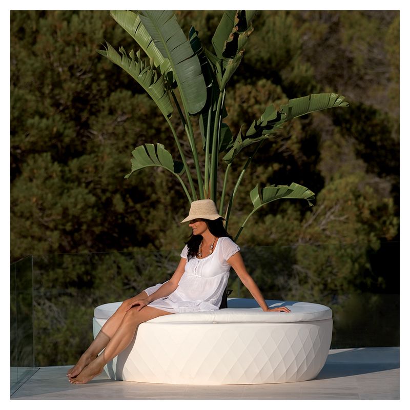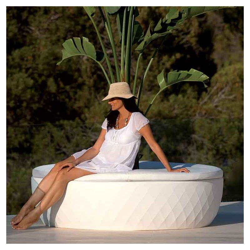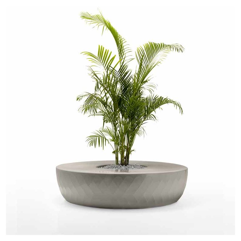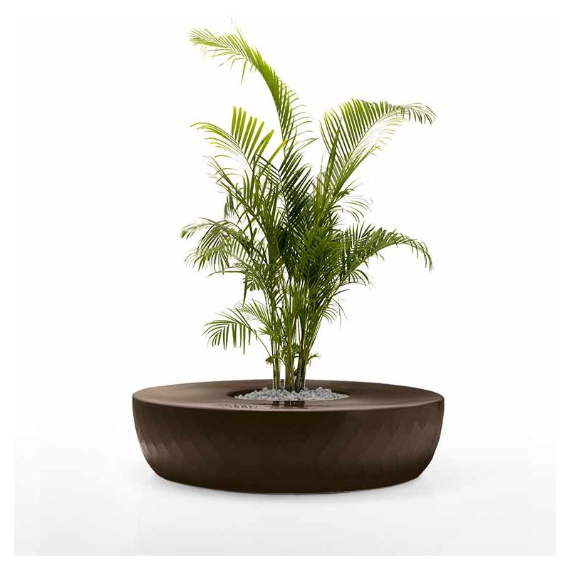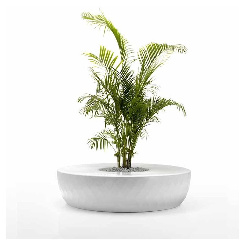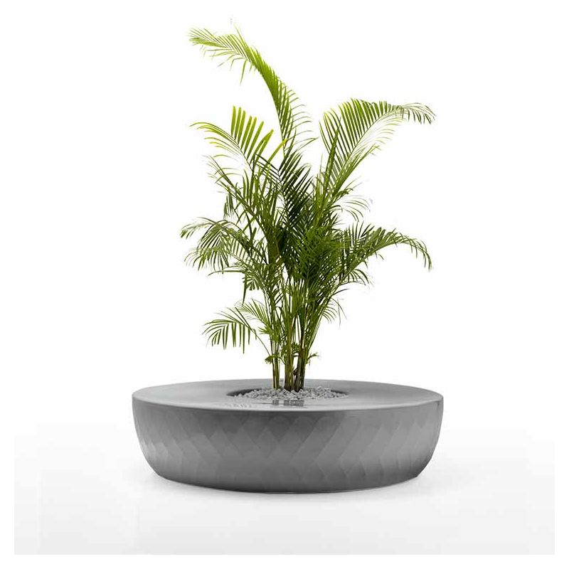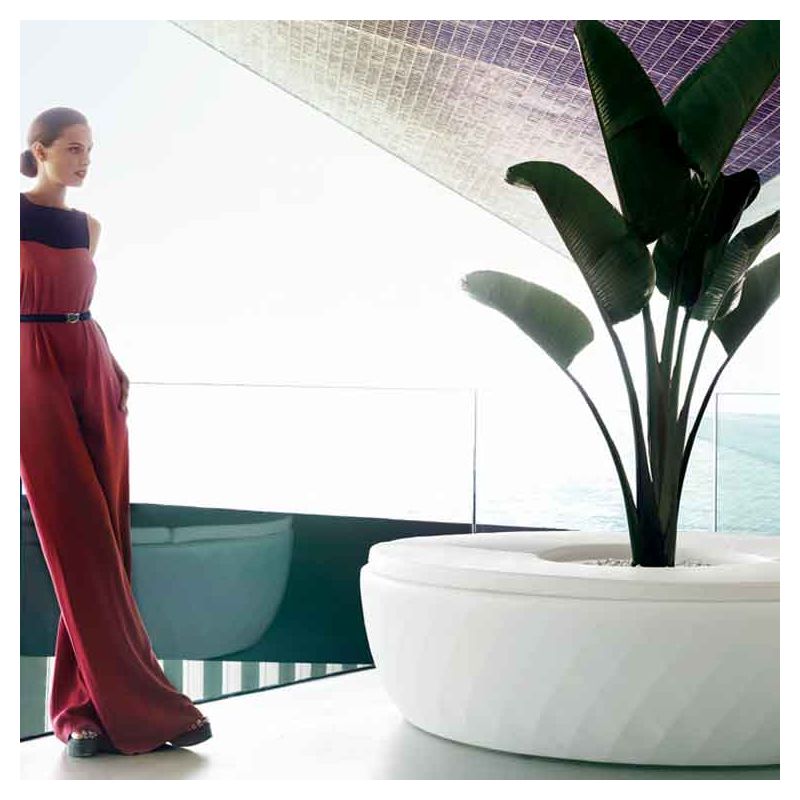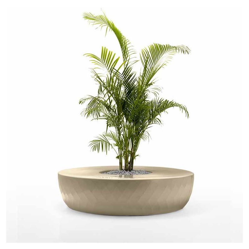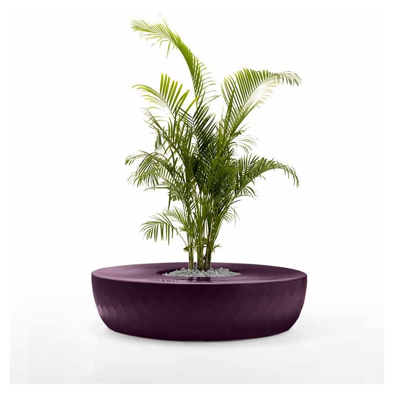 | Détails | Banc circulaire avec jardinière centrale en polyéthylène, Teinté dans la masse, Finition mate, Système d'auto-arrosage inclus, Coussins en option |