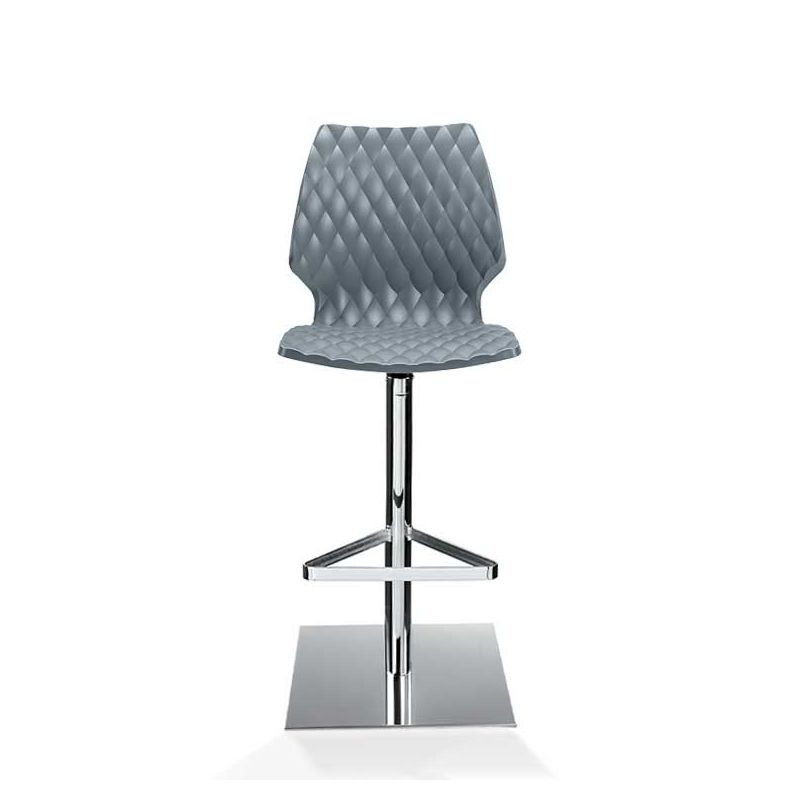 L'assise texturée à effet matelassé, la finition brillante du piètement chromé et les belles proportions séduisent dès le premier regard. L'ergonomie de la coque en polypropylène moulé se montre tout aussi convaincante. Equipée d'un repose-pieds et d'un mécanisme pivotant, la chaise de bar Uni assure ainsi une position d'assise idéale.