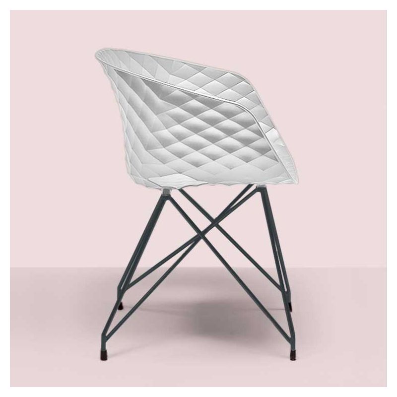 Son design inédit - signé Francesco Geraci - se caractérise par une assise coque en polypropylène dont l'effet matelassé original attire irrésistiblement l'oeil et évoque immédiatement le confort.