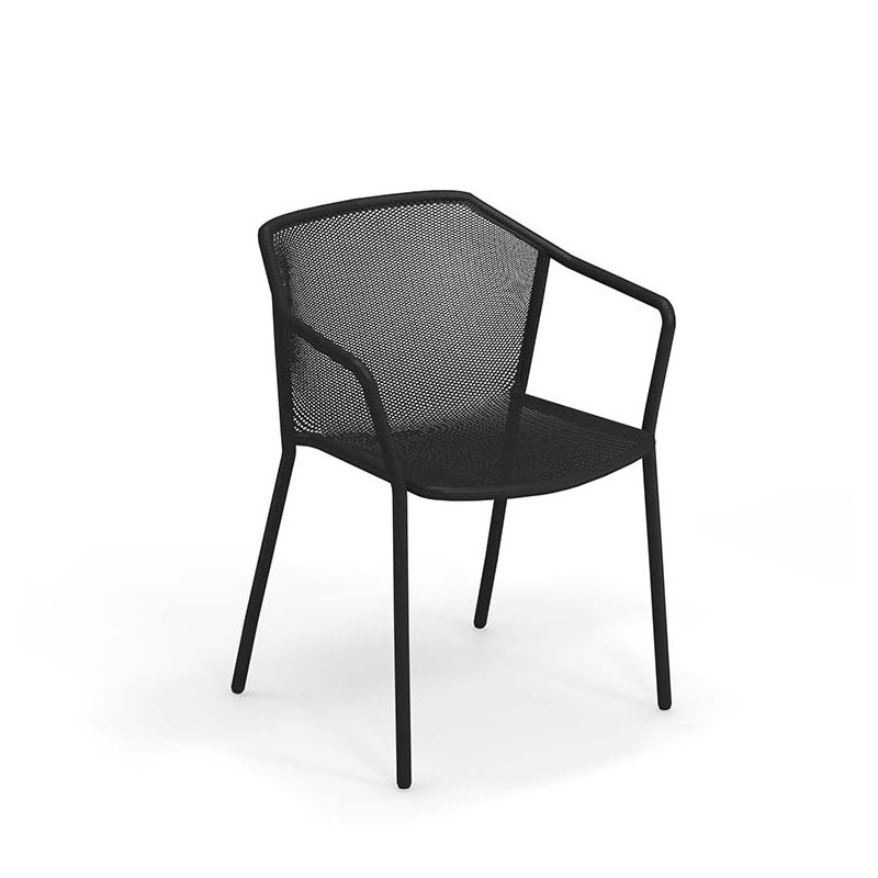 | Détails | Structure tubulaire en acier vernis, Assise et dossier en résille d'acier verni coloré, Accoudoirs tubulaires hauteur 68 cm, Acier composé d'un alliage de fer et de carbone, teneur en carbone inférieure à 2%, Traité anticorrosion selon le procédé exclusif EMU-Coat, Empilable par 8 unités, Pieds équipés d'embouts anti-rayures |