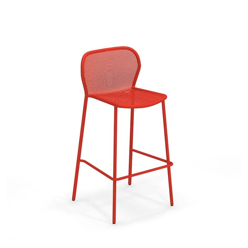 Chaise de bar outdoor coordonnée à la table haute Darwin. Sa ligne moderne légère et la fine résille d'acier coloré raviveront l'ambiance du plan bar de la cuisine...