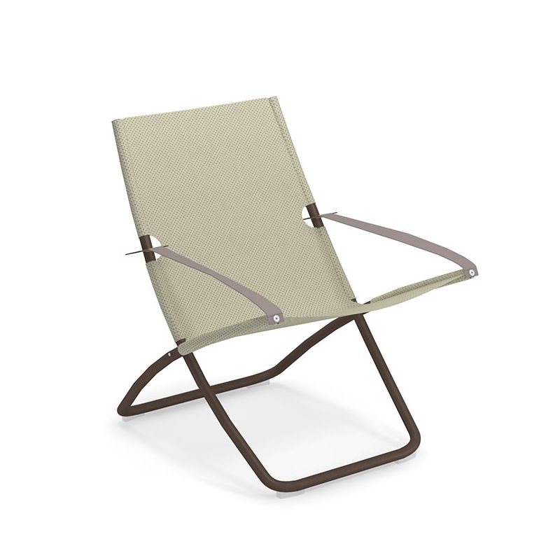 | Détails | Structure tubulaire pliante en acier vernis, Assise et dossier enveloppant en toile spécial outdoor, Dossier 2 positions inclinable par un simple mouvement des accoudoirs, Acier composé d'un alliage de fer et de carbone, teneur en carbone inférieure à 2%, Traité anticorrosion selon le procédé exclusif EMU-Coat, Toile amovible en textile spécial outdoor Emu-Tex : séchage rapide, lavable, indéchirable et très résistant au soleil et aux intempéries, Pieds équipés de patins protecteurs anti-rayures |
