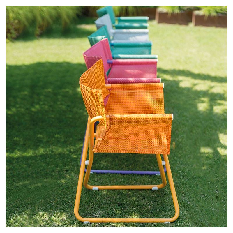 Fauteuil d'extérieur pliant en métal et toile colorée. Léger et pliant, Snooze vous suivra tout l'été du balcon à la plage et de la terrasse au jardin...