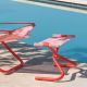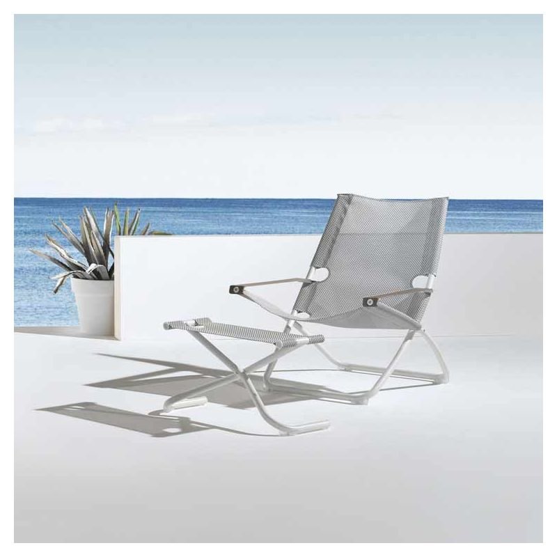 En siège d'appoint ou en repose-pied avec les fauteuils Snooze, ce pouf tabouret de jardin est très pratique l'été : léger, pliant, robuste, toile outdoor lavable...