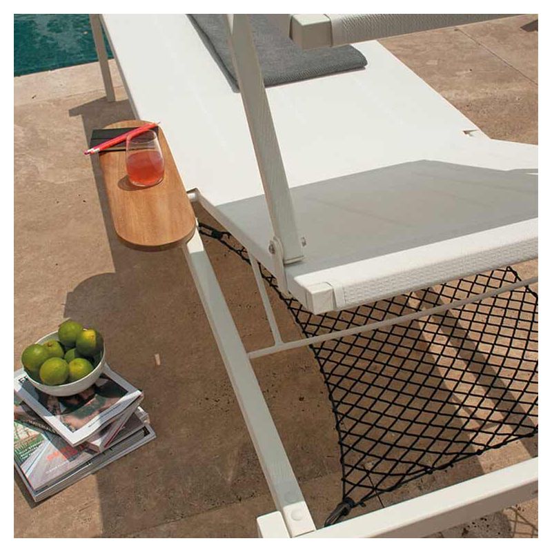 Pour un confort accru, le bain de soleil Shine Emu pourra être complété des accessoires proposés par la marque : pare-soleil orientable, filet de rangement en maille à suspendre sous le bain de soleil, accoudoir tablette en teck pour garder à portée de main vos lunettes de soleil, un livre ou une boisson fraîche...